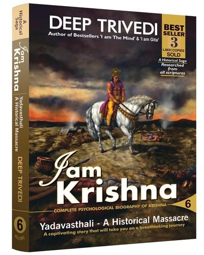 I am Krishna – Yadavasthali (Vol 6) explores Krishna’s role in the Mahabharata, life after the war, and the downfall of the Yadavas. It offers deep psychological insights based on ancient scriptures.