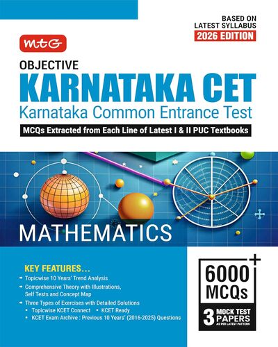MTG Objective Karnataka CET 2026 is a comprehensive book designed for KCET aspirants with 6000+ MCQs, previous 10 years’ solved papers, topic-wise and chapter-wise exercises, mock tests, and detailed solutions. It covers complete theory as per the latest syllabus, provides trend analysis, visual aids, and concept clarity to help engineering aspirants master time management, strengthen concepts, and excel in the KCET 2026 exam.
