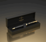 Premium Design: Parker Aster Ball Pen features a sleek lacquer black metal barrel with elegant gold-plated trim.
