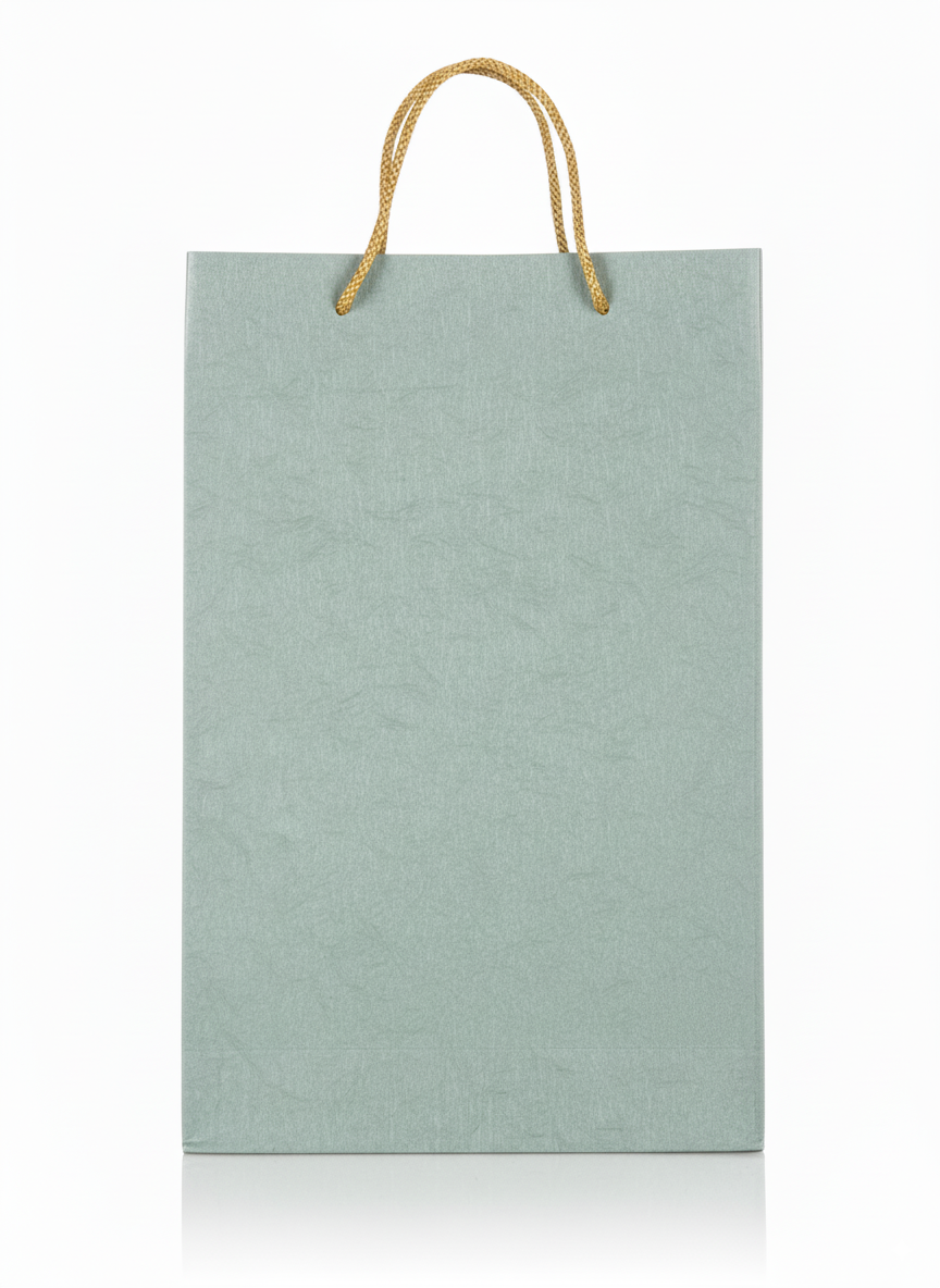 PLAIN GREEN PAPER BAG WITH GOLDEN HANDLE